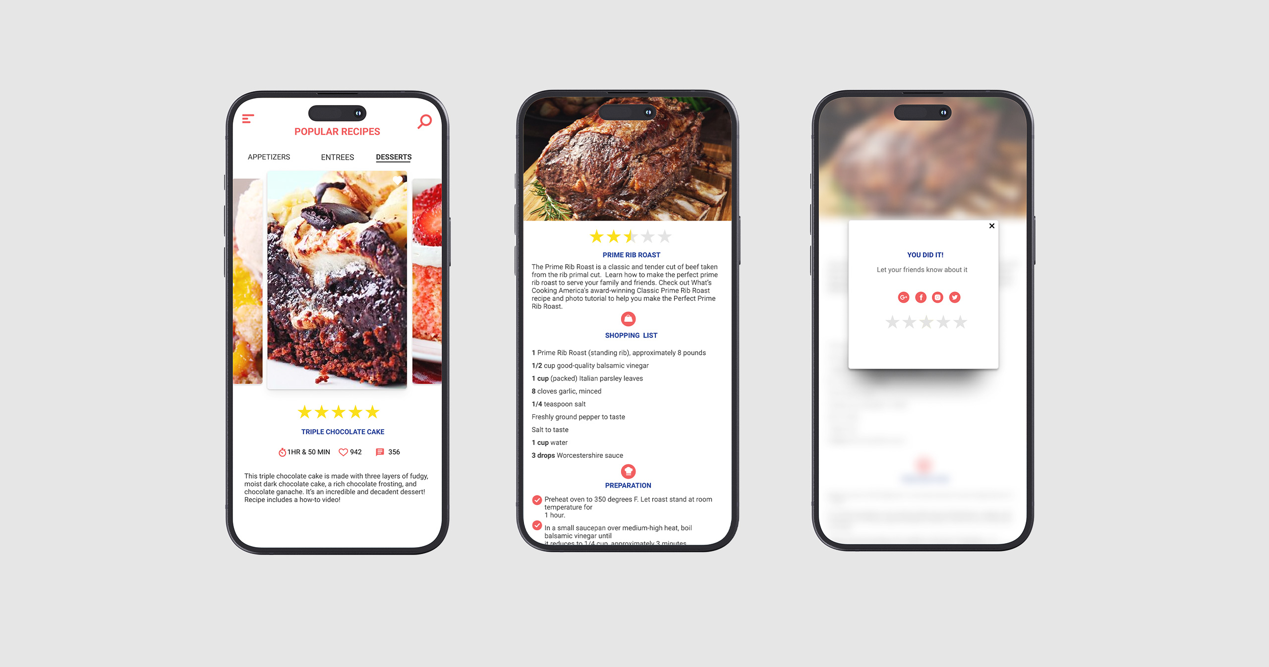 Accessible from the recipe detail page, cooking tools provide users with helpful resources such as measurement and prep times.